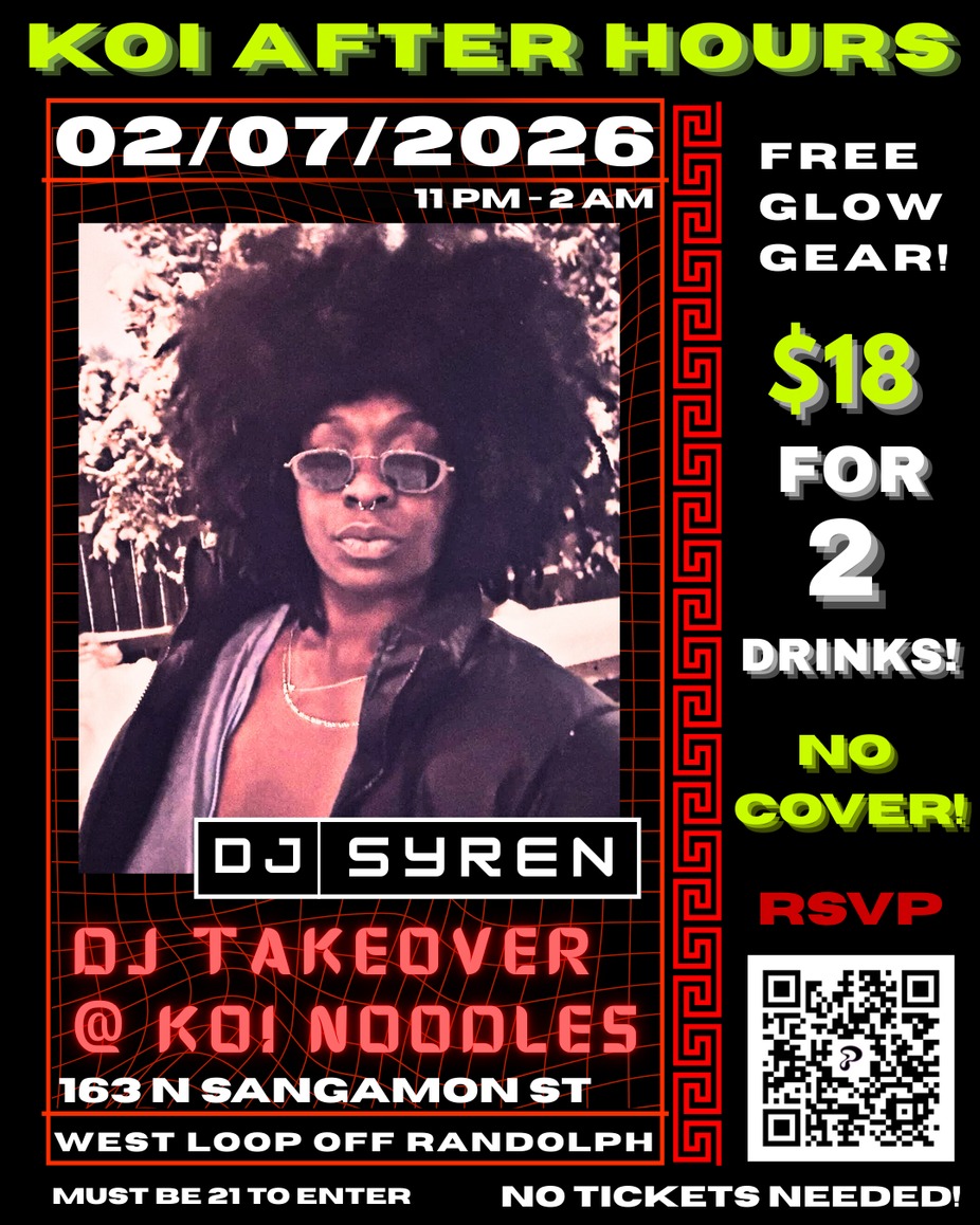 Join us as Koi flips the script from noodles to night club! Live DJ, strong drinks, and good vibes only :) None of your hard-earned dollars just to get in! $18 for 2 drink tickets required upon arrival.